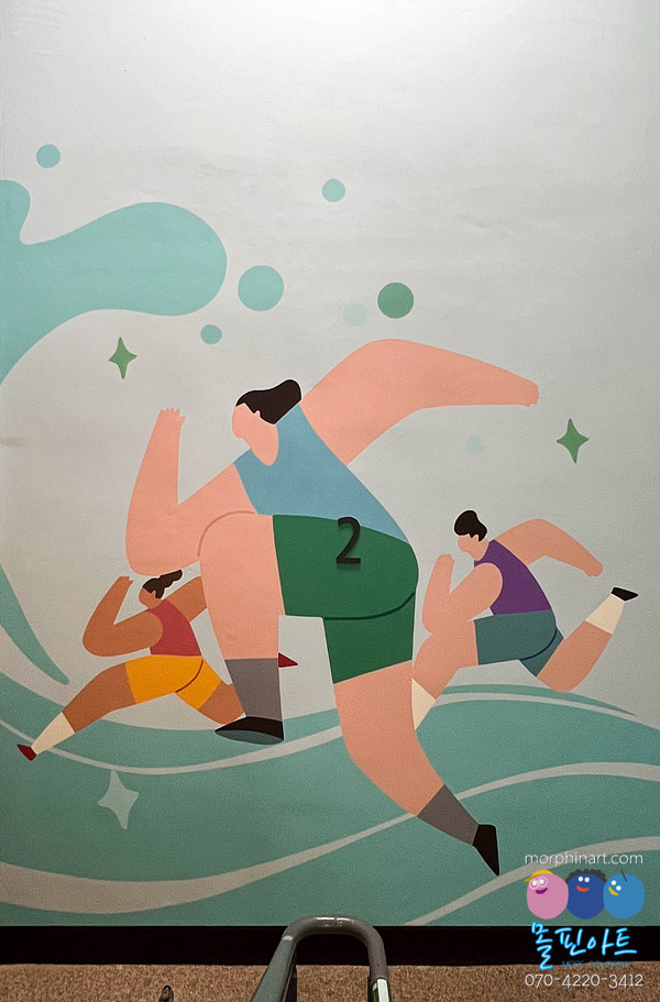디자인 컨셉: 층별로 이어지는 수영-달리기-자전거 테마를 통해 층을 오를수록 성취감을 느낄 수 있는 몰입형 환경 조성.